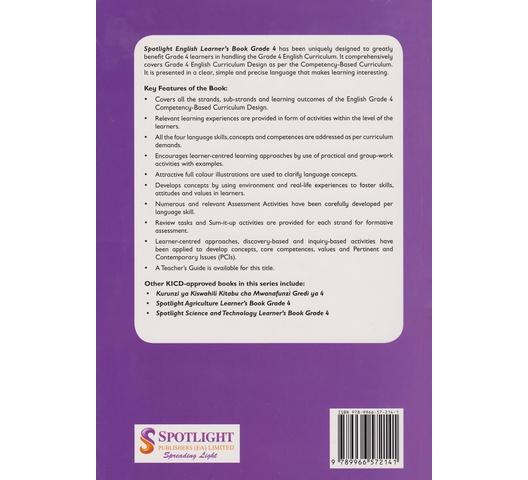 Spotlight English Learner’s Book Grade 4 has been uniquely designed to greatly benefit Grade 4 learners in handling the Grade 4 English Curriculum. It comprehensively covers Grade 4 English Curriculum Design as per the Competency-Based Curriculum.